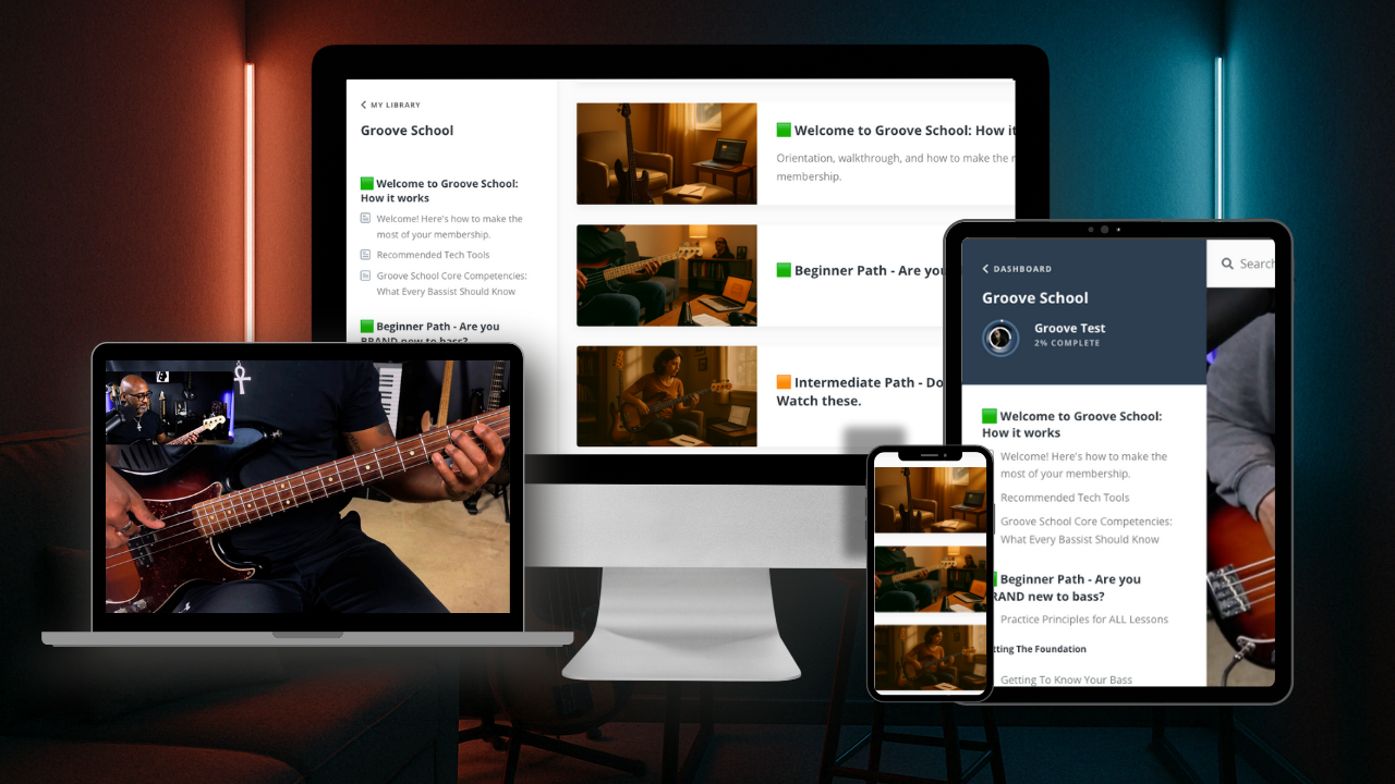 The monthly membership gives you full access to the Groove School learning environment—structured, organized, and focused on the things that actually make you a better player.