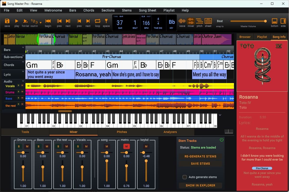 It uses smart audio analysis to break songs down as music, not tabs or licks. You can see the form, track the bars, follow the harmony, and loop exactly what you need — straight from the original recording.